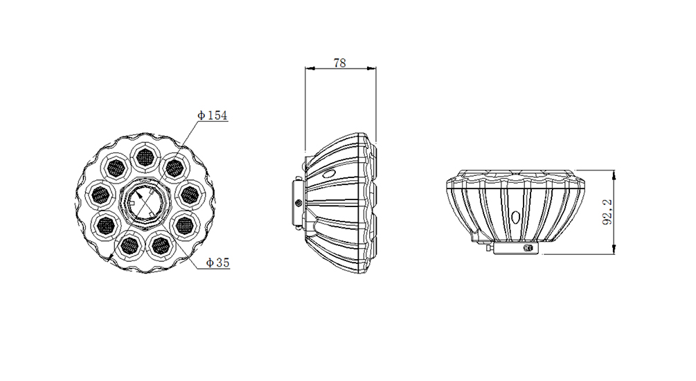 | 02 | DC12V | 9W | RGB+W | DMX512 | 30°、45° |